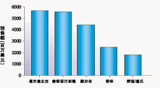疫苗市场在过去5年里飞速增长。据报道,全球五大制药巨头(赛诺菲巴斯德、葛兰素史克、默沙东、辉瑞以及诺华)疫苗产品的销售额占了整个疫苗市场的80%,其疫苗产品总销售额也从2004年的71亿美元增加到2009年的200亿美元。新型高价疫苗的上市以及大流行流感疫苗的销售推动了近几年疫苗市场的强劲表现。然而,成本控制、流感疫苗之间竞争的日益加剧、后期研发线新产品的缺乏,以及强烈的反对接种的学说都将是影响疫苗领域继续增长的关键因素。