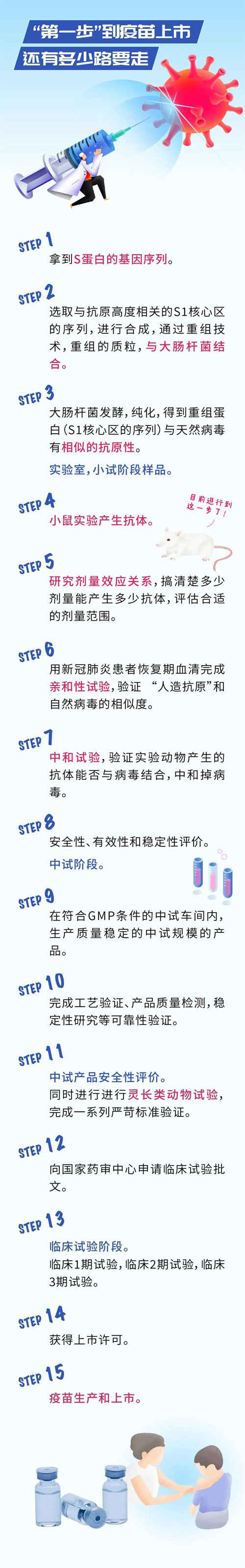从 “第一步”到疫苗上市,还有多少步要走?下面这张表说得很清楚了。